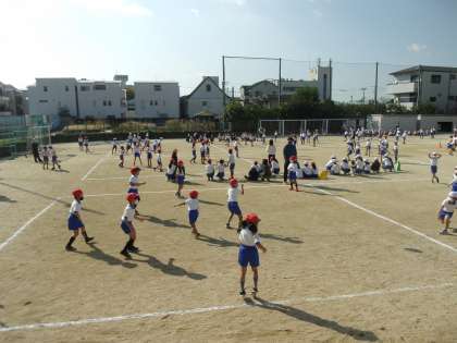 晴れやかな秋空のもと、なかよし班対抗の球技大会が行われました。1〜3年生の試合が前半、4〜6年生の試合が後半の2部制で、各チームがそれぞれ5試合の熱きゲームを繰り広げました。子どもたちは、自分たちより上の学年のすごさを間近で感じることができ、なかよし班の団結力もさらに高まったのではないでしょうか。