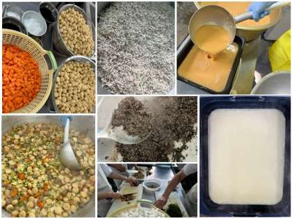 大阪市の給食に使っている一口がんもは、とうふやにんじん、でん粉などから作られた1個約5gの小さいもので、煮ものに使用しています。