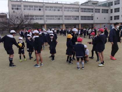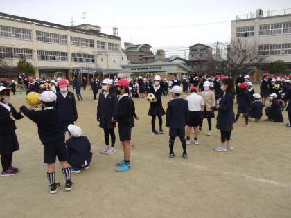 木曜日の児童集会で、終了時にボールを持っているとアウトとなる「爆弾ゲーム」をしました。ゲーム終了のホイッスルが鳴るたびに、大きな歓声があがり、どのなかよし班も楽しそうに活動できていました。上級生が下級生にやさしくボールを渡す姿が見られるなど、ほのぼのとした気持ちになりました。