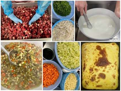 給食の焼きプリンは、卵、牛乳、クリーム、砂糖を混ぜ合わせ、カラメルソースの上に入れ、焼き物機で蒸し焼きにします。表面にできるほのかなこげ目が特徴です。また、砂糖と水を褐色になるまで煮つめたカラメルソースの香ばしさやほろ苦さも味わえます。