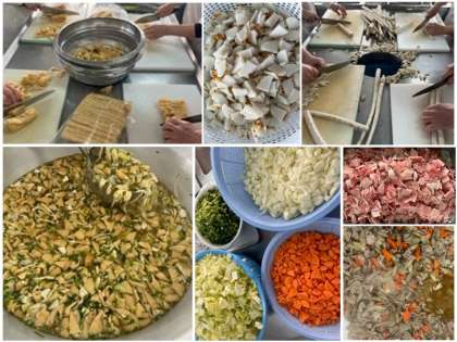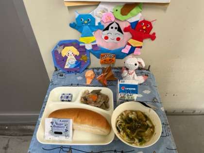 大阪市の給食では「きつねうどん」をイメージして、三角に切って甘辛く煮たうすあげと、かまぼこ、はくさい、青ねぎなどを取り合わせ、とろろこんぶを添えたうどんを「なにわうどん」と呼んでいます。