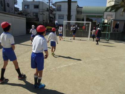 1年生のドッジボールも以前より動きが活発になってきました。