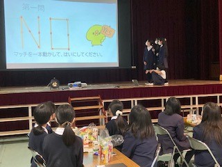3〜6人程度のグループが、それぞれクイズやゲームの進行役になり、たくさんの出し物を楽しみました。中にはダンスも披露され、みんなは手拍子で応援するという、6年生の優しさと笑顔があふれる会となりました。