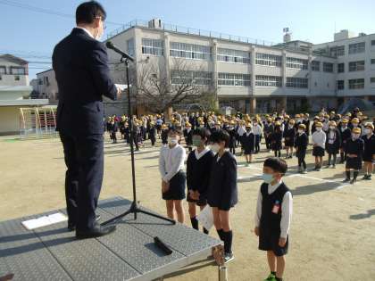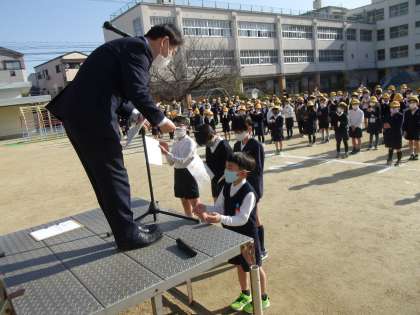 第40回大阪市読書感想画コンクールにおいて、茨田東小学校から6名の児童が奨励賞をいただき、児童朝会で賞状を渡しました。