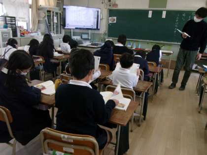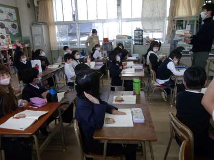 「もうすぐ3年生になるからね」と説明を受けると、少し緊張した面持ちで先生の音読を聞いていました。