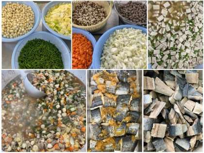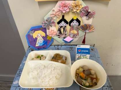 今日の給食には、高野どうふ(カット)を使用していますが、高野どうふ(粉末)を使った献立も登場しています。