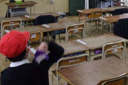写真下 教室では、お絵描きやぬりえをしたり、紙飛行機を飛ばしたりして楽しみました。