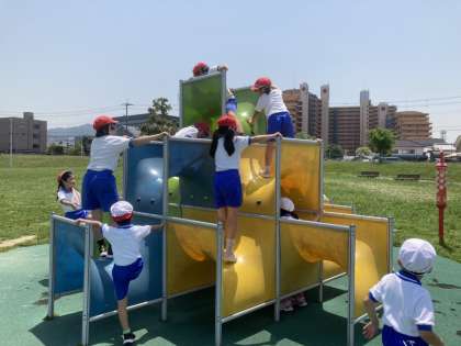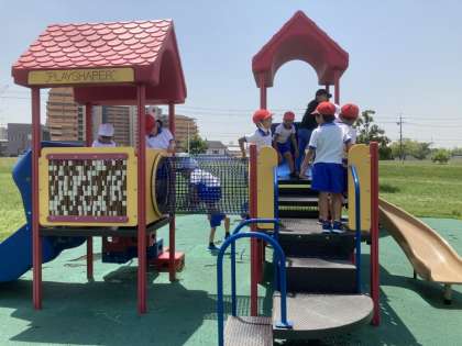 遊具で遊んだり、芝生で鬼ごっこをしたり、