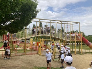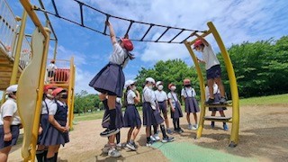3年生4年生は、遊具で仲よく元気に遊んでいます。