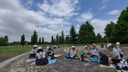 みんな揃って芝生広場に到着しました。