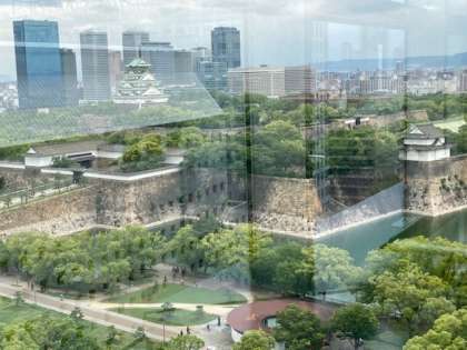 階を移動する際には、大阪城を中心になにわの街が見渡せます。