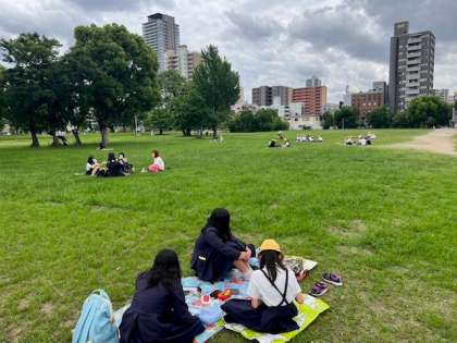難波宮跡でお弁当タイム