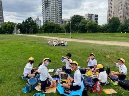 曇り空ですが芝生広場を貸し切りで使用でき、気持ちよく食べることができました。