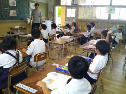 音読の場面では、先生の読んでいるところを指でなぞりながら聞いたり、リズムよく読んだりできました。