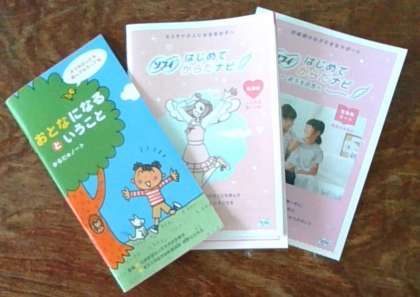 生理用品の試供品だけでなく、子ども向け・保護者様向けの月経に関する内容の冊子を持ち帰っていますので、ぜひ、親子でご覧ください。