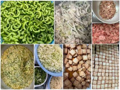 「チャンプルー」とは沖縄県の方言で「ごちゃまぜ」という意味で、いろいろな食材をいためた料理です。
