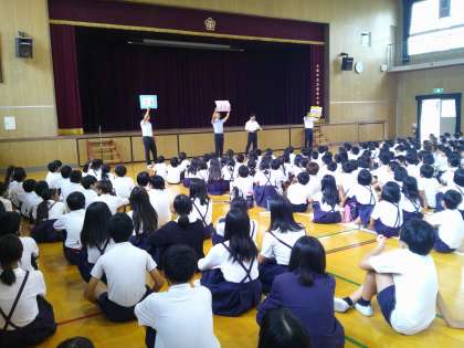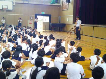 校長先生や生活指導担当の先生から夏休みの生活について話がありました。