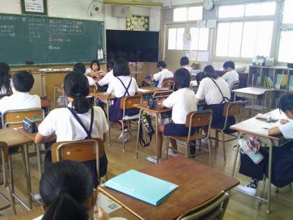 運動場はまだまだ暑いですが、各教室ではエアコンが効いており、落ち着いた態度で学習に取り組んでいます。