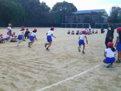今日は5時間目に、4年生がリレーの練習に一生懸命に取り組んでいました。