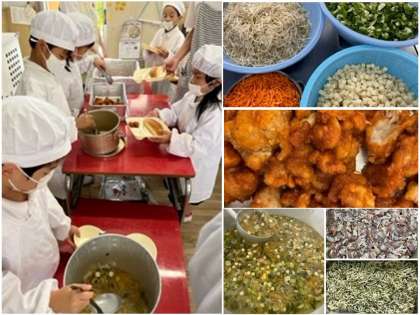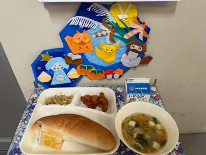 給食では、しょうが、にんにく、料理酒で下味をつけた鶏肉に、でん粉をまぶし油で揚げ、料理酒、みりん、こいくちしょうゆ、ケチャップ、コチジャンを合わせたたれをからめて作ります。