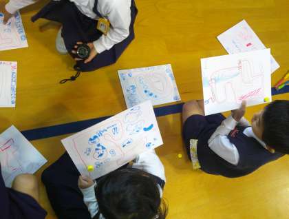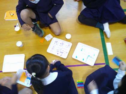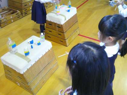 どのおもちゃも、とても工夫されており、1年生は楽しそうにいろいろなおもちゃで遊んでいました。