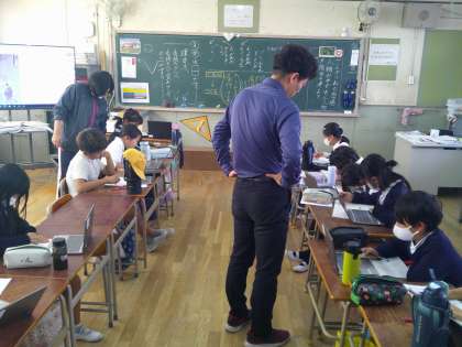 ごんや兵十の気持ちの変化を一人一台端末のJam Boardを使って、本文から読み取りました。子どもたちは積極的に自分の意見を発表していました。