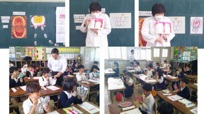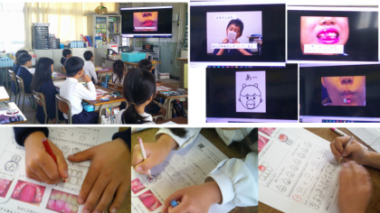 今週、歯科衛生士さんと歯科校医先生に来ていただき、2年生を対象にはみがき指導をしました。新型コロナウイルス感染症流行の影響で、この数年間できていなかった、鏡で自分の口の中を見ること、実際に歯みがきをしてみることができました。