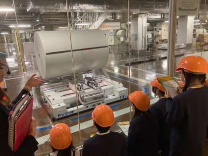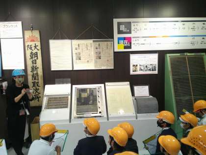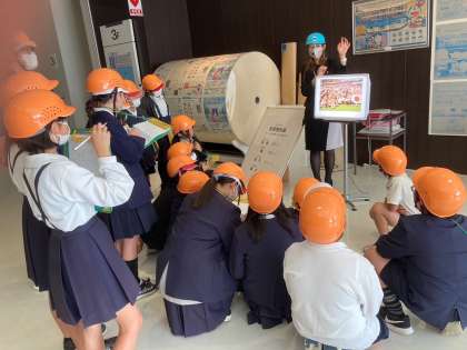 工場の中はとても広く、大きな機械やロボットがたくさんあって、子どもたちはとても驚いていました。新聞ができていく過程を間近で見ることができ、とても有意義な学習となりました。