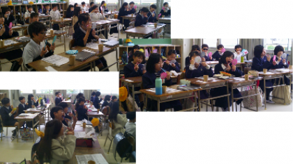 歯科校医先生と、歯科衛生士さん2名に来ていただき、4年生を対象に、歯科保健指導とフッ化物洗口を行いました。