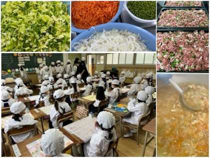 今日から今年度の給食が始まりました。1年生も小学校で初めての給食を、美味しく、しっかりと食べていました。