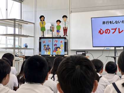 万引きや夜の過ごし方など犯罪に関するお話や、携帯電話やスマートフォン、LINEやSNSなどを通じて犯罪に近づいてしまったり、いじめが広がってしまうことになったりするので、「使い方には十分気をつけてください。」というお話でした。