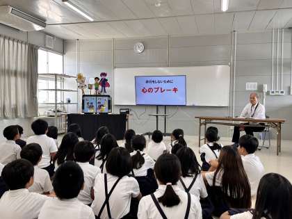 最後に5年生に、「犯罪にかかわらないように、また、巻き込まれないよう『心のブレーキ』を心がけるように!」というお話を聞きました。