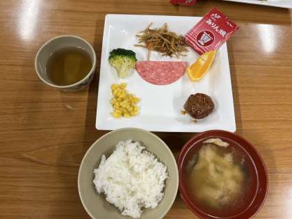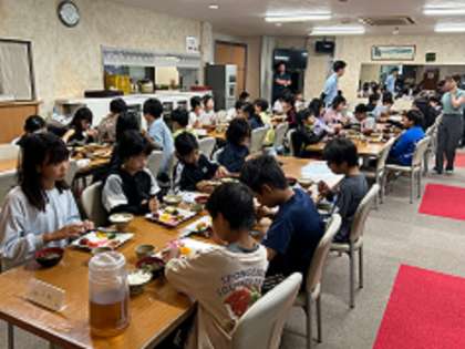 あいにくの小雨で、朝の体操は室内で行いましたが、この後の活動は屋根のある場所で行う予定ですので、影響はありません。