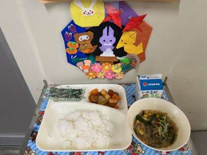 今日の給食では、豚肉とたまねぎ、たけのこ、にんじん、ピーマンを使用し、米酢、こいくちしょうゆ、ケチャップなどで味付けをしています。