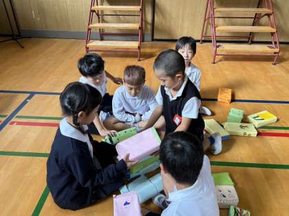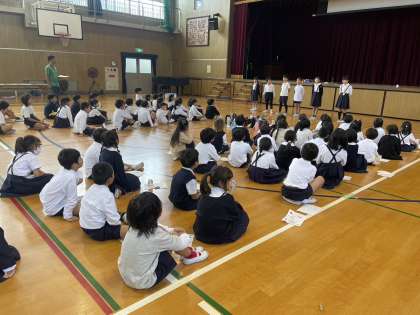 2年生は国語科・生活科で手作りのおもちゃを作り、遊び方を1年生に説明していました。魚つりやボーリングなどアイデアいっぱいのおもちゃがたくさんありました。また1年生は説明をしっかりと聞き、作ってくれたおもちゃを丁寧に使って楽しく遊ぶことができました。おまつりが終わった後、1年生から「楽しかったー!」と言う感想がたくさんあり、それを聞いた2年生はとても喜んでいました。