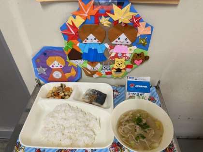 今日の給食では、混合けずり節と昆布の合わせだしをすまし汁に用いています。