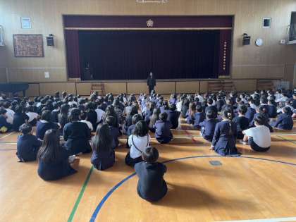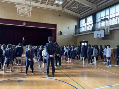最後に、校歌をみんなで歌いました。少し寒さを感じる講堂の中でしたが、講堂の中にいるみんなと歌いあたたかく感じました。3学期の始業式も全員と元気に会えることを願っています。