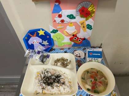 今日から、3学期の給食が始まりました。寒さが厳しい日が続きますが、好ききらいをせずしっかりと食べて、元気に過ごしてもらいたいと思います。