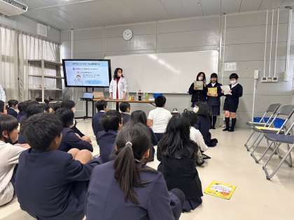 次にくすりの中でも使ってはいけない違法薬物や、くすりを、病気やけがを治すこと以外に使用してはいけない、薬物乱用の防止について教えていただきました。子どもたちは違法薬物の恐ろしさについて知り、驚いた顔をしていました。