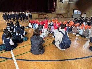 来校してくれた園児のみなさん、この春に各小学校に入学する日を楽しみに待っていますよ。