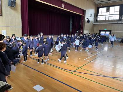その後も各学年ごとに6年生への感謝の言葉や歌のプレゼントがありました。最後には6年生から在校生に向けて迫力ある「He's a Pirate」の合奏と、「これからの茨田東用学校を盛り上げてほしい!」という言葉がありました。在校生からの拍手の中、退場する6年生の笑顔はとても素敵でした。残すところあと少しの小学校生活を楽しんで過ごしてほしいと思います。