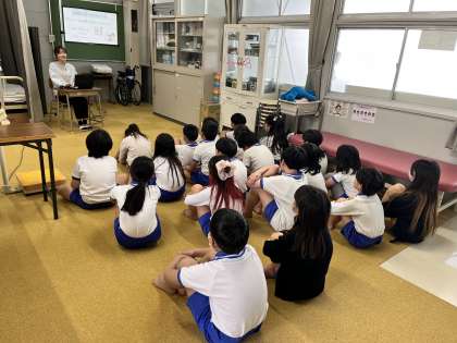 4月9日〜11日の3日間、1年生から6年生までの全校児童の発育測定を行いました。養護教諭から「保健室の使い方」についてのお話の後、身長と体重を測定しました。