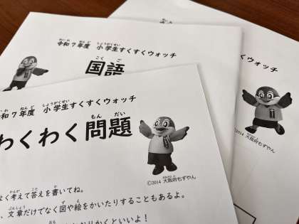 5年生は、4年生までに学んだ国語科や算数科、理科の問題に取り組みました。また、6年生と5年生で、文章や図や表、グラフやホームページなどを読みとって、自分の考えを書いたり、記号を選んで文章を書いたり、図や絵をかいたりする『わくわく問題(教科横断型)』に取り組みました。