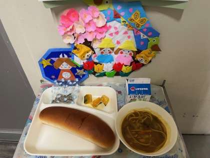 「かぼちゃのマリネ焼き」は、新登場の献立です。今日の給食では、かぼちゃに野菜ブイヨン、ノンエッグドレッシングを合わせて下味をつけ、焼き物機で焼いています。