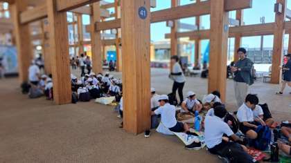 お弁当タイムです。海風が心地よくて、大屋根リングの下はとても心地よいです。