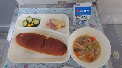 今日の給食では、じゃがいもとベーコンを使った「ジャーマンポテト」が登場しました。
