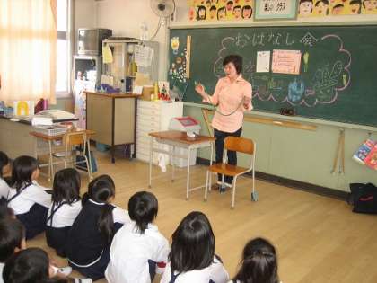 各学年とも、お話サークル「でんでんむし」の皆さんの導きで、