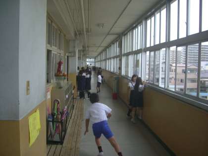 廊下は、子どもたちの熱気で渦巻いていました。
