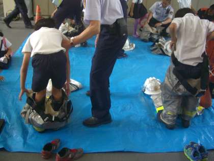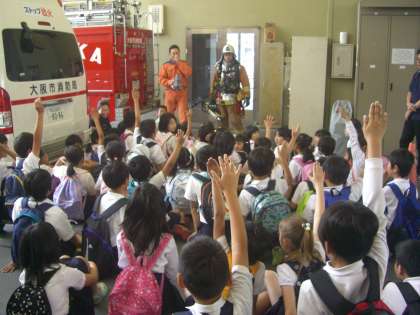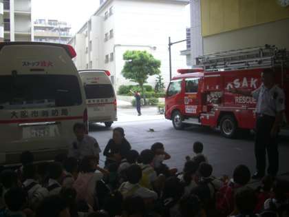 説明の途中で突然、救急指令が入り、救急車2台が現場に直行していきました。