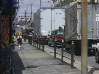 交通量の多い道の歩道を歩き、ケーキ屋さんへ。
